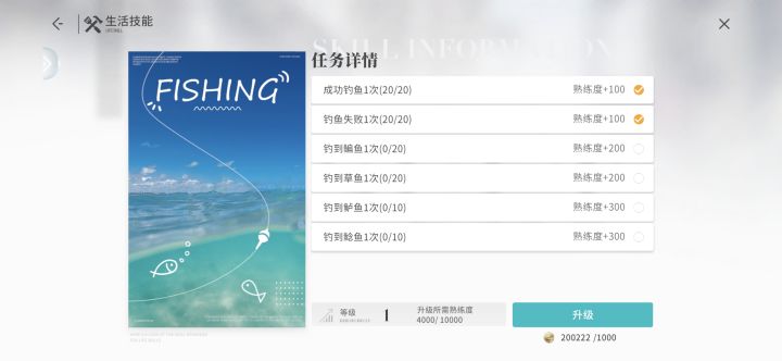 钓鱼技能无法升级 钓鱼不加升级经验,经验任务无法正常获取数据,升不了钓鱼等级!
