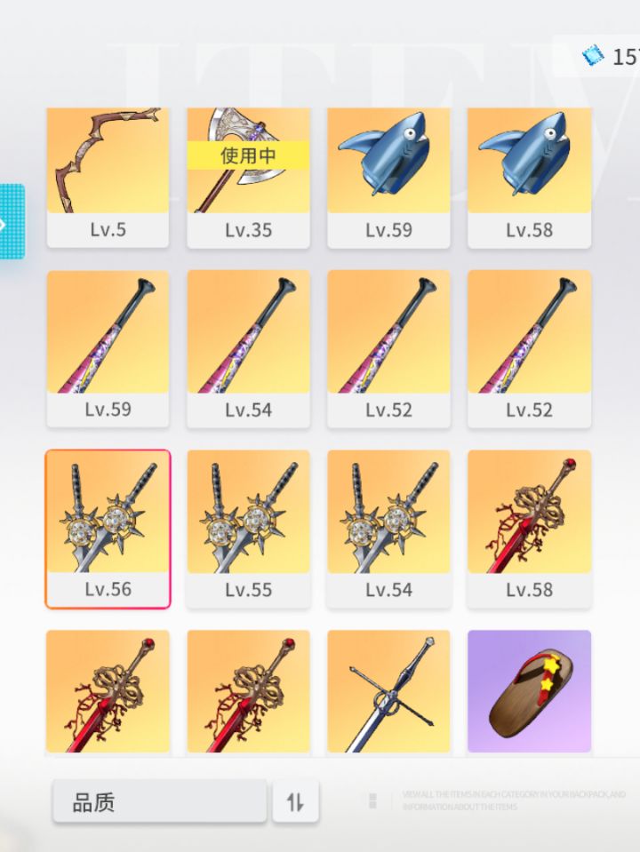 一、简略陈述:光谱武器本通关会掉落各种金色武器,唯独不会掉落角色佩戴的常用金色武器。二、详情经过:有些人可能会觉得目前等级还在提升,没有必要浪费体力药水刷武器本,今天我和我朋友刚到开金色武器本的等级,刚好手里的武器还是低级的,就打算刷个金色的武器过渡,起初认为是我们运气不好,所有可能掉落的金色武器通关后都出现过。唯独常用武器一次也没有出现,于是我们决定死磕出来,平均每个号刷一晚上消耗 大、中、小