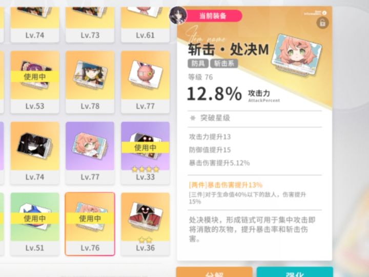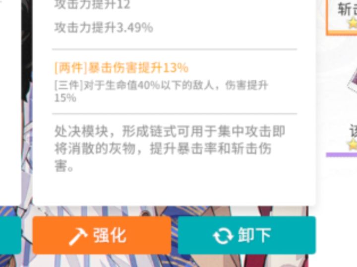 斩击处决描述写的是提升暴击率和斩击伤害 但两件套效果写的是爆伤 (贴了个立场共振做对比 立场共振描述和效果是正常的)