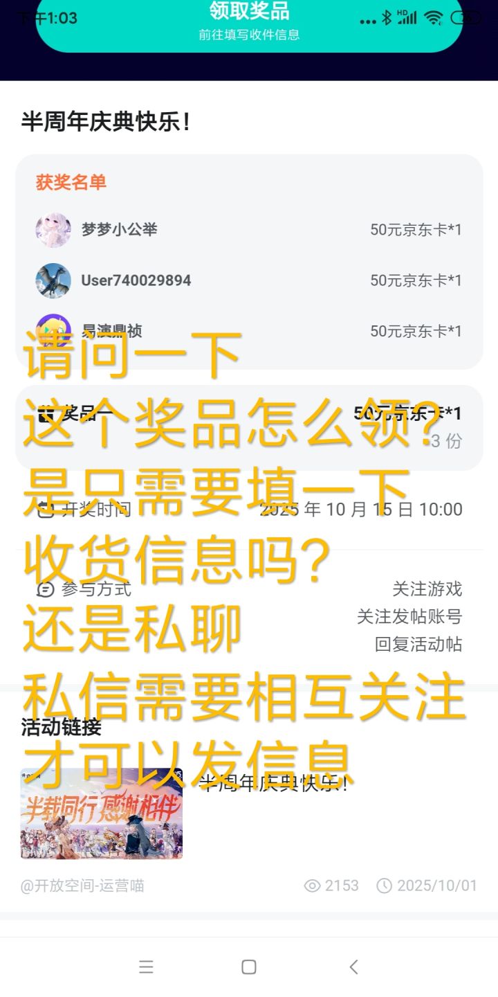 请问一下这个奖品怎么领?是只需要填一下收货信息吗?还是私聊 私信需要相互关注才可以发信息麻烦告诉一下,不知如何联系