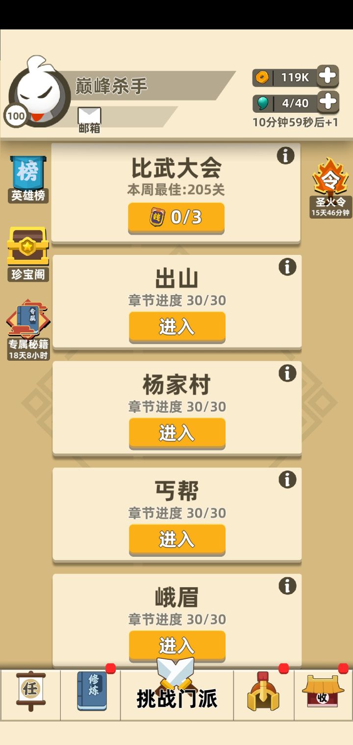 刚做出来金箍棒和屠龙刀衣服和帽子也快了,刚刚过了河西走廊,每天体力广告看满,体力刷光,任务全做,达叔换碎片从此走上人生巅峰,再过1周左右衣服帽子预计全出,倚天剑和方天画戟还有锤子不着急慢慢做就行,附带一段天山开荒视频感觉还行打到20关了慢慢升功法吧