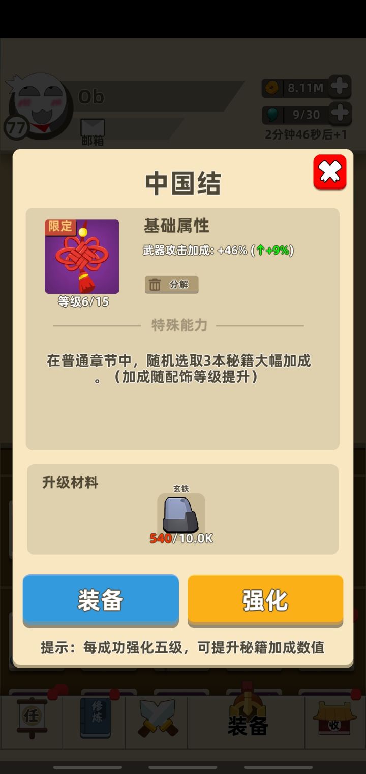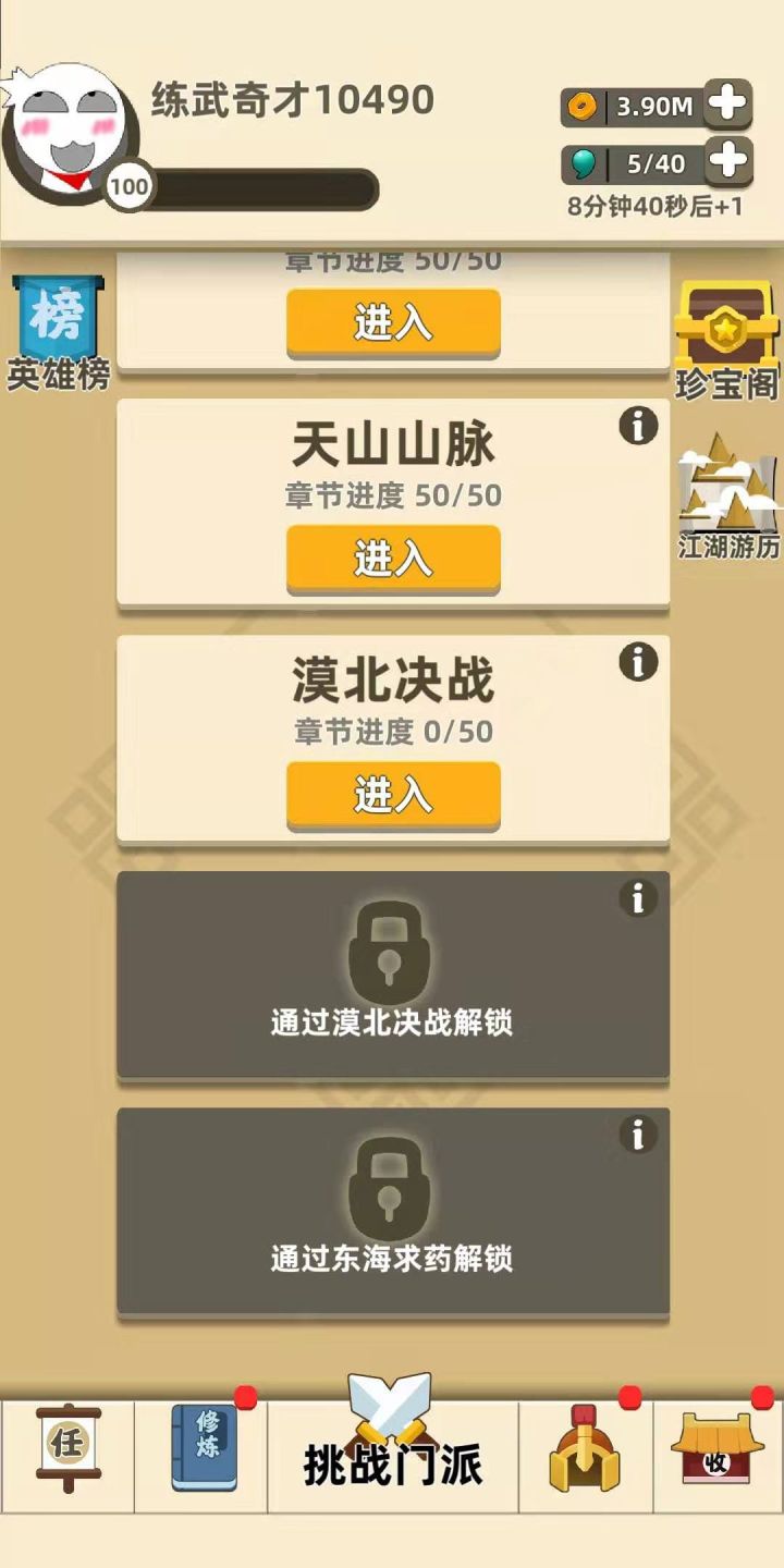 我功夫特牛手游中玩家可以在游戏中通过触发奇遇获得属性加成,前提是选择正确的情况下,接下来我就给大家分享一下游戏中奇遇怎么选择。我功夫特牛奇遇攻略游戏中关卡顺序依次为:出山→杨家村→丐帮→峨眉→日月神教→华山→少林→武当→皇城→北境匈奴,其中日月神教之前出山→杨家村→丐帮→峨眉均为30章节关卡,日月神教→华山→少林→武当→皇城→北境匈奴均为50章节关卡,每解锁新的关卡之后,都有新的装备获得,新的内