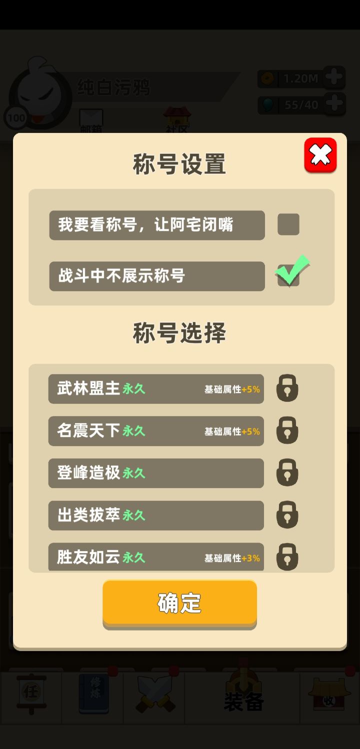 东方不败的三个称号之前都搞过了,前两天没事闲的搞了下没东方不败的版本,结果称号没了😂