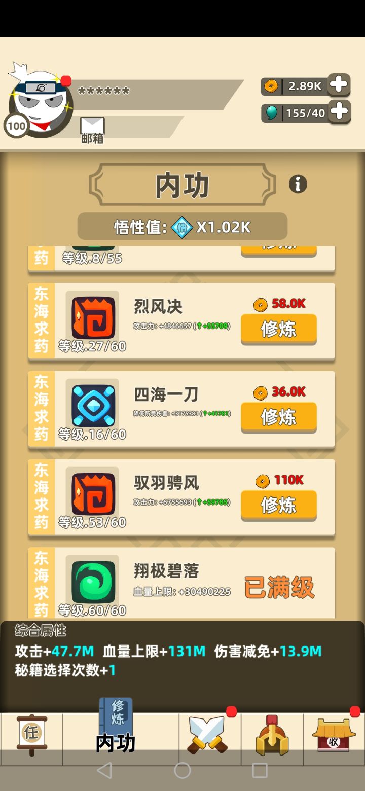 游戏后期难度太高了,太肝金币了,你看我秘籍从武当开始,很少有满级的,而且关卡属性相差值也太大了吧?