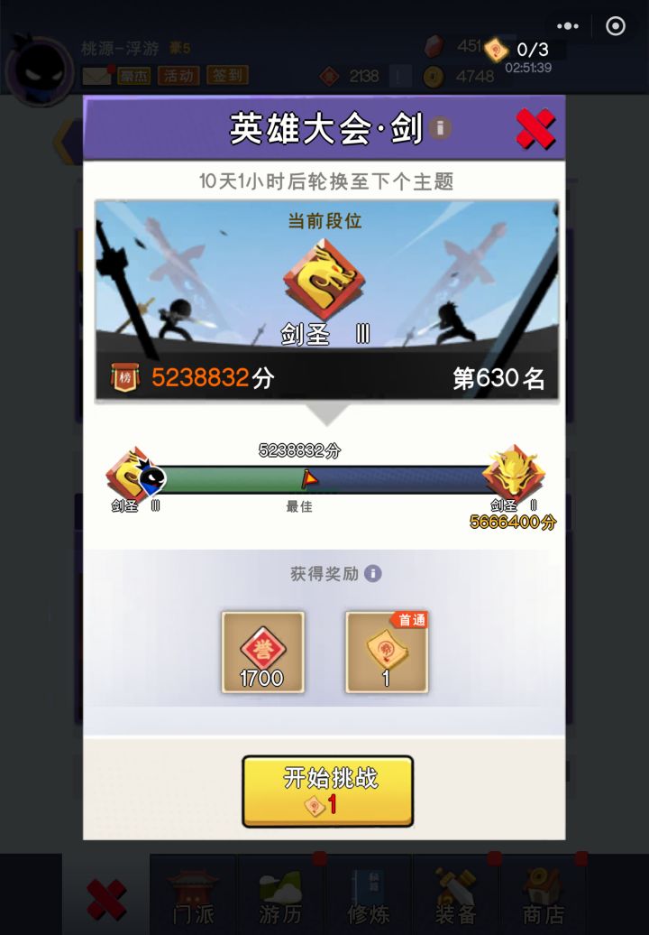 小号玩八天就达到剑圣3了,从未有过皮肤兑换不了了,只能换两块阴铁今日进度:10610关
