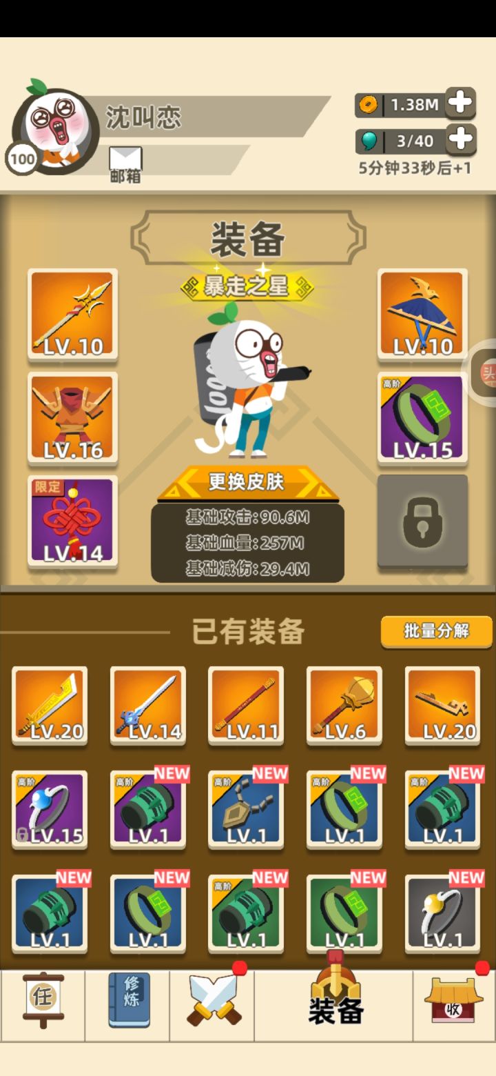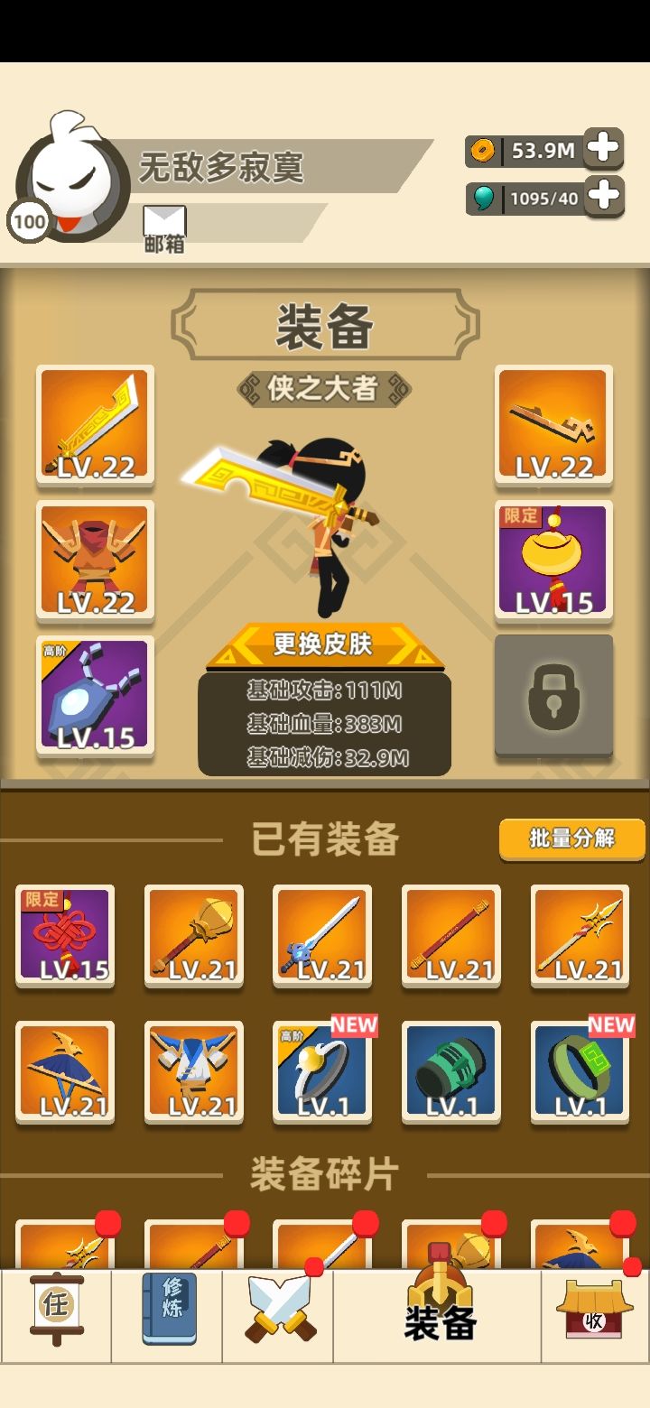这游戏刚出的时候玩了一段时间,要实名删了,现在下回来发现这个武器好刮痧呀!打个弓箭手都要打半天,内功什么的平凡的我都参悟不了😂😂