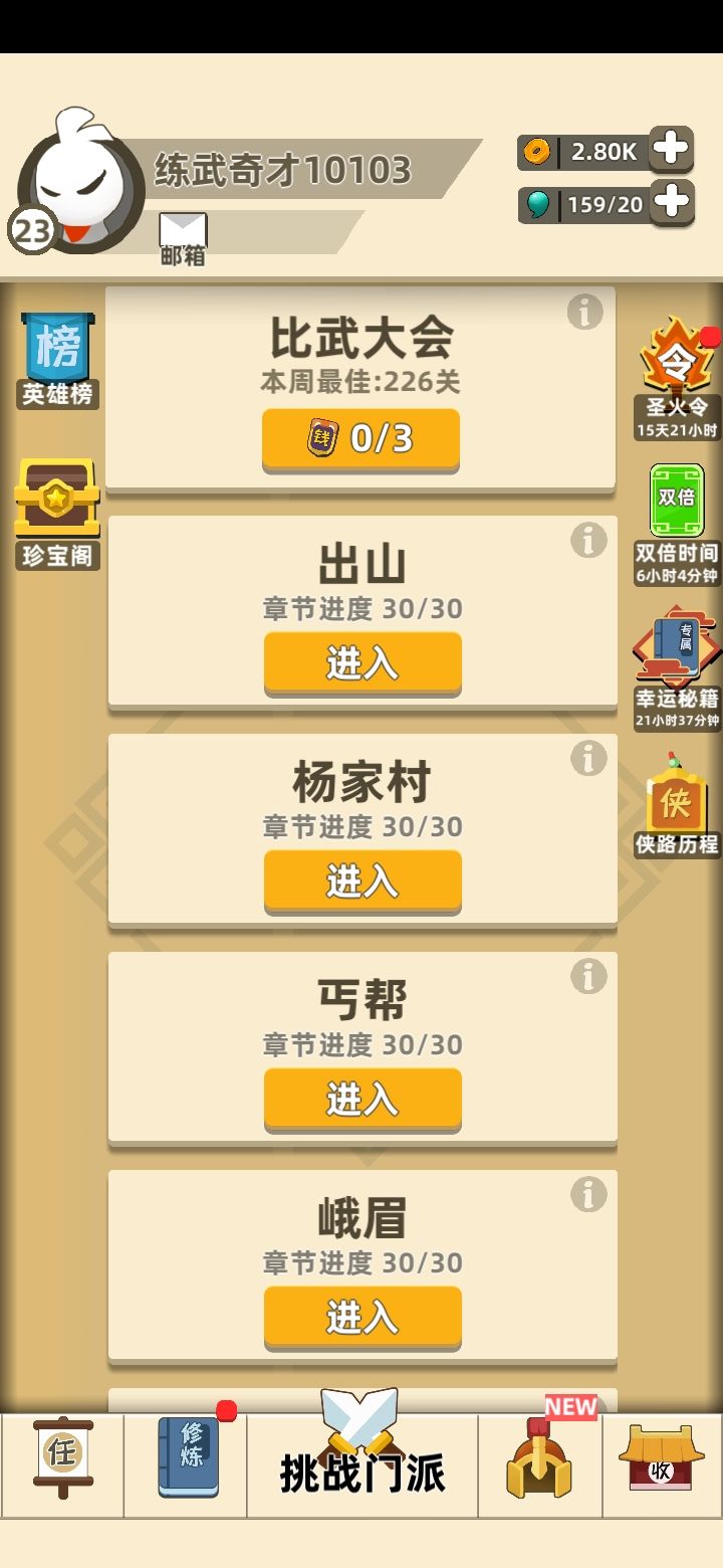 昨天晚上开的号,今天打到这直接给我打蒙了,摸我一下就没了。。。这游戏关卡太搞心态了吧。比武大会直接给我打睡着了,都不知道这第一九千多关是怎么打的。。。这游戏两天就给我玩吐了。
