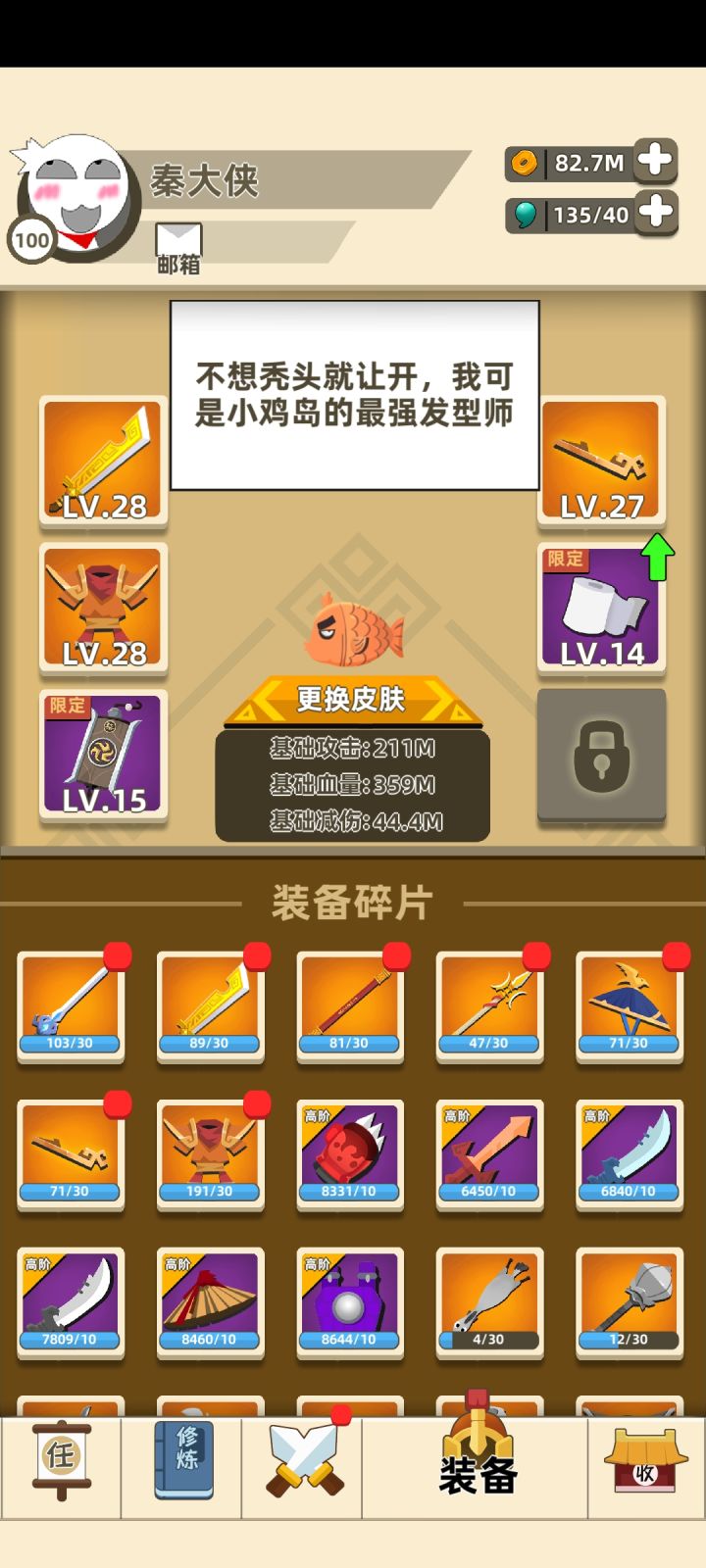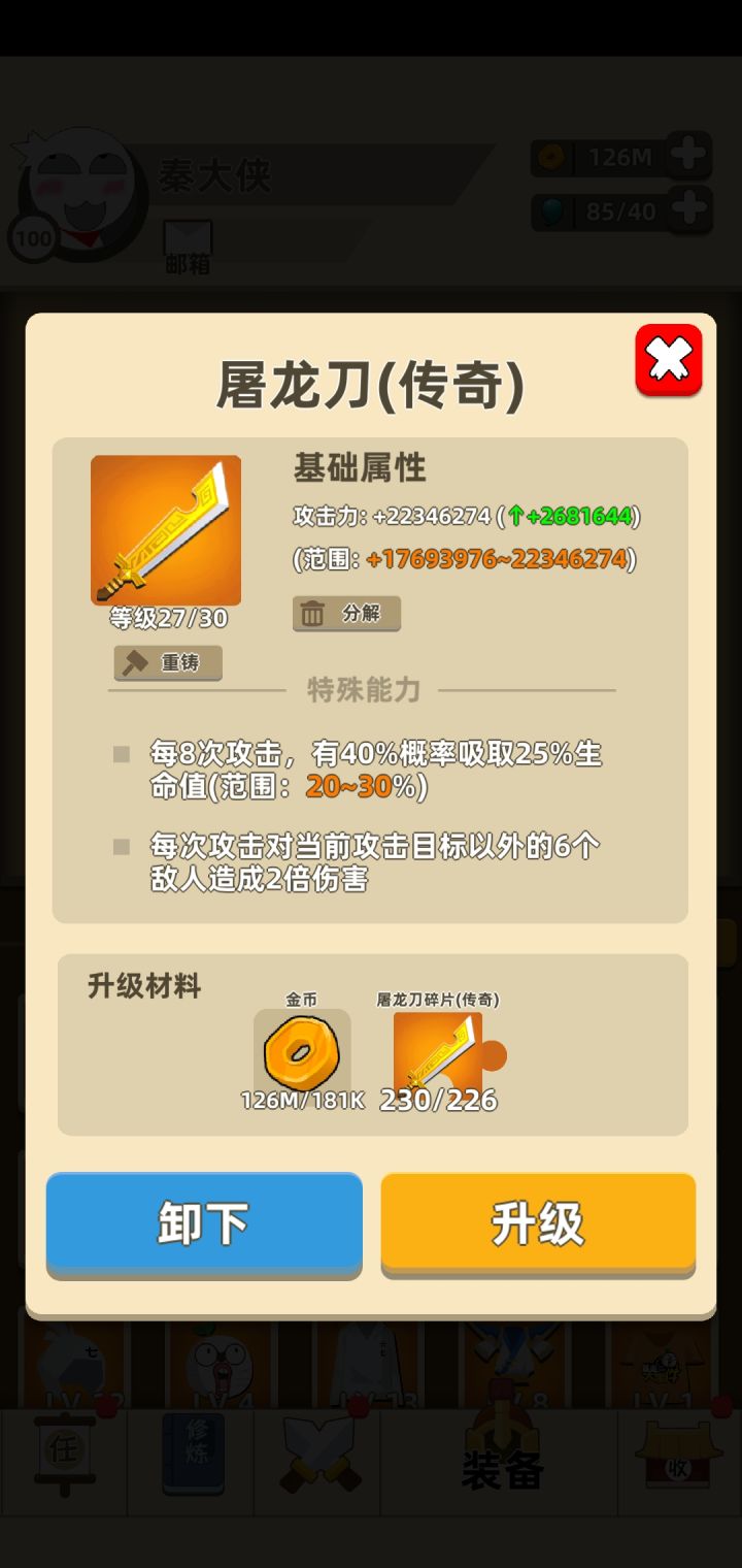 屠龙升28了,头箍27了,攻击加了20M