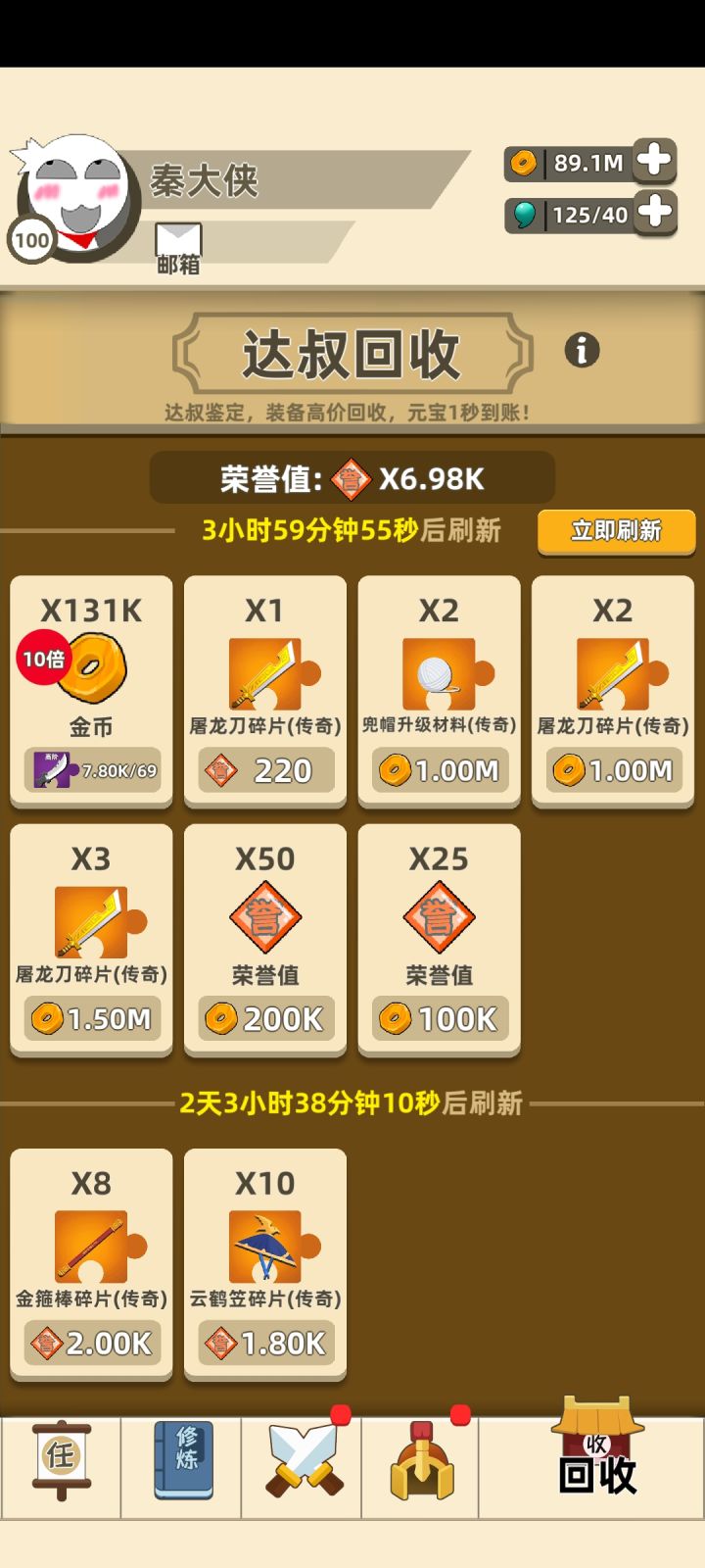 有几个周没上号了,屠龙也给得多