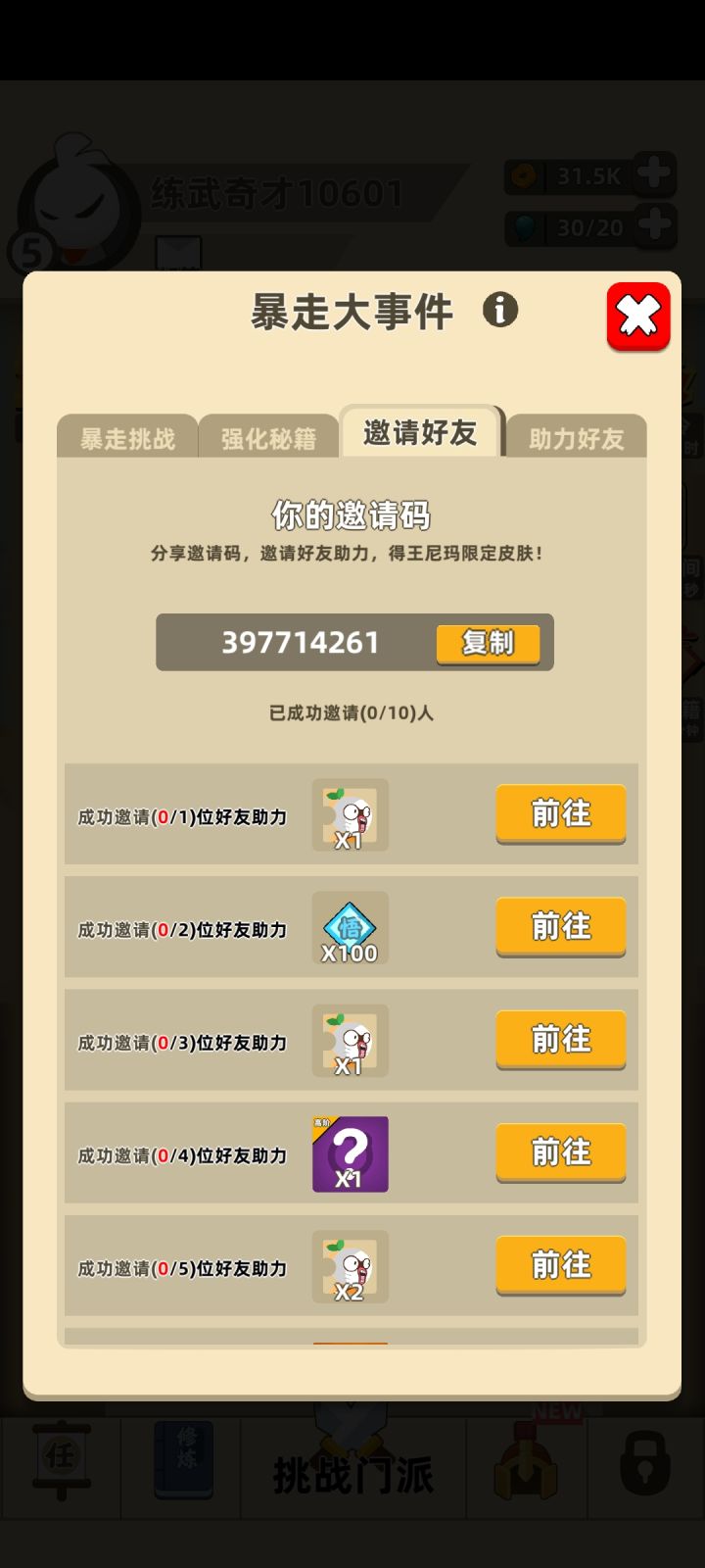 《我功夫特牛》,填我ID【111179560】互助多少有点骄傲的别夸别夸嘿嘿,顺便在这求各路大佬互助一下通关暴走事件,如果有大佬有更好的战绩欢迎在此评论