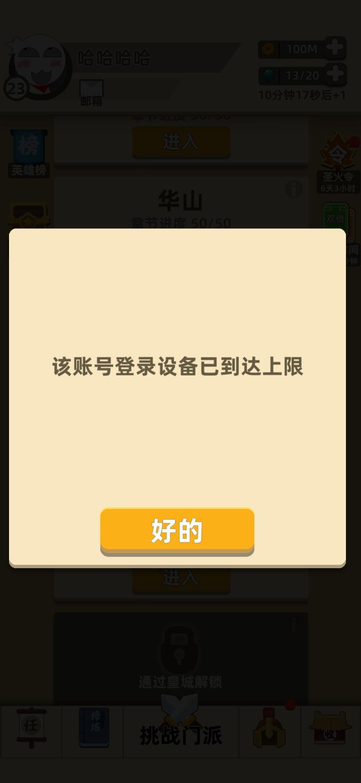 我只在一个手机上玩过!为什么说我账号登录设备上限了??你们的判定依据是什么???官方能给个答复吗!
