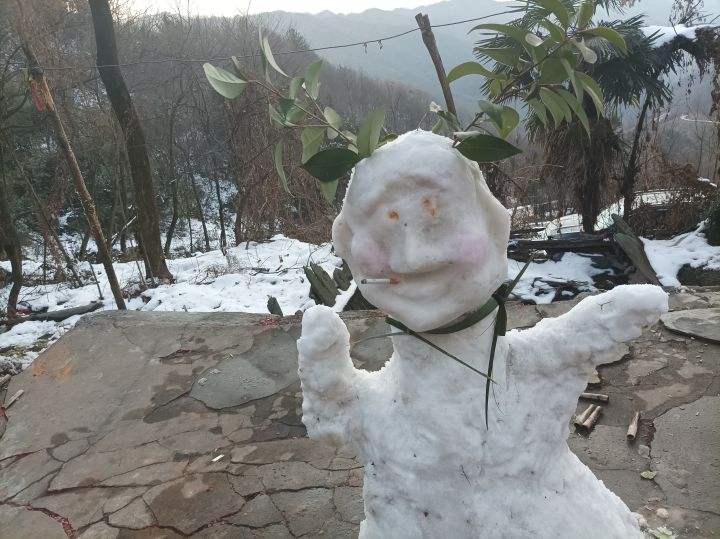 老家做的沙雕的雪人😂,抽根华子😂