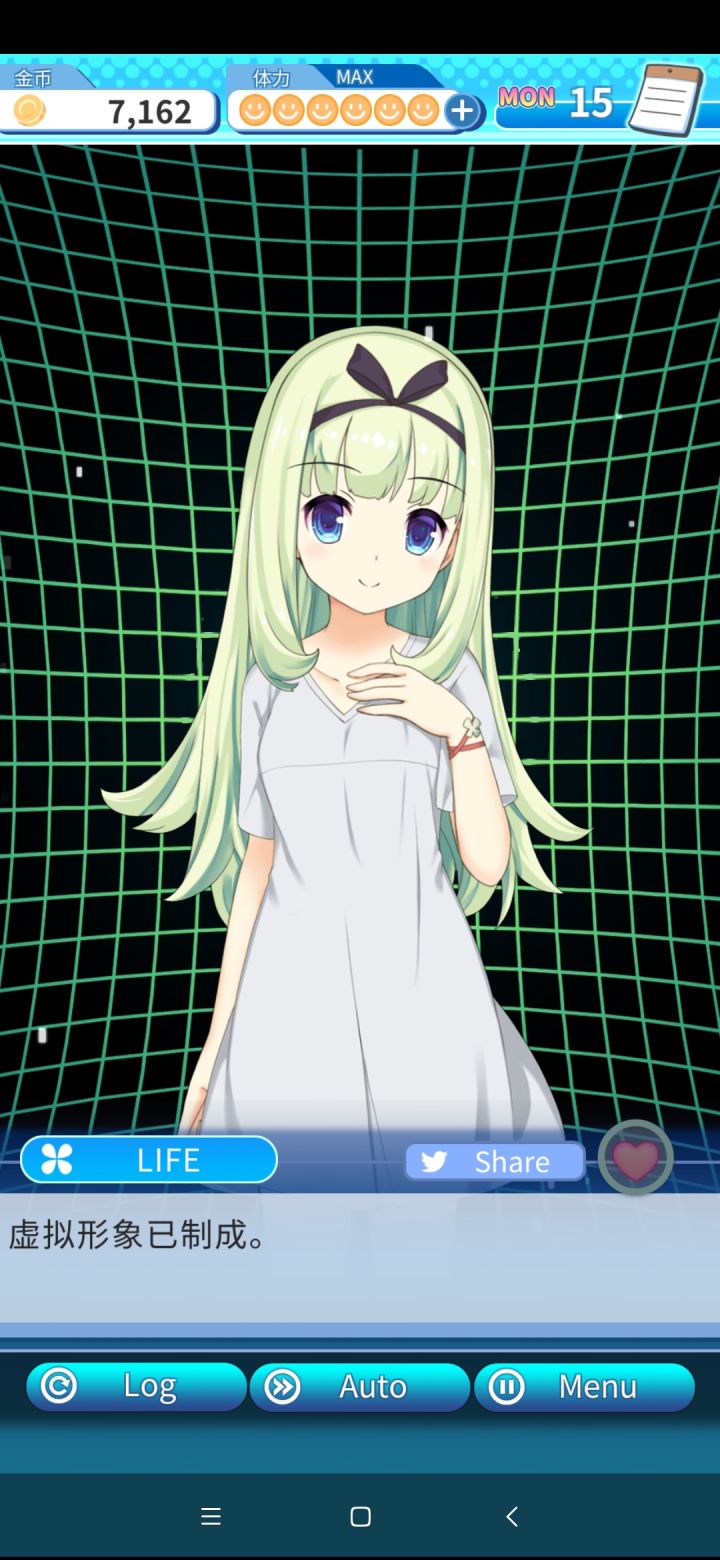 配方按照7个问题的顺序如下:幻想世界,散步,适合自己,滑雪,清晨,开心的故事,钥匙链。为了证明自己我又花了半个多小时终于捏出来了(现在游戏时长应该已经快六个小时了吧(-ι_- ))……我最开始是为了在玩真物语的时候还原我在伪物语里捏的闺女的(下图),然后突然就试出来了这个方案,不过即使每个选项都不变,最后捏出的女儿也有概率是不同的,甚至肤色和瞳色也是随机的,下面这两张图就是我分别两次捏出的千夏,