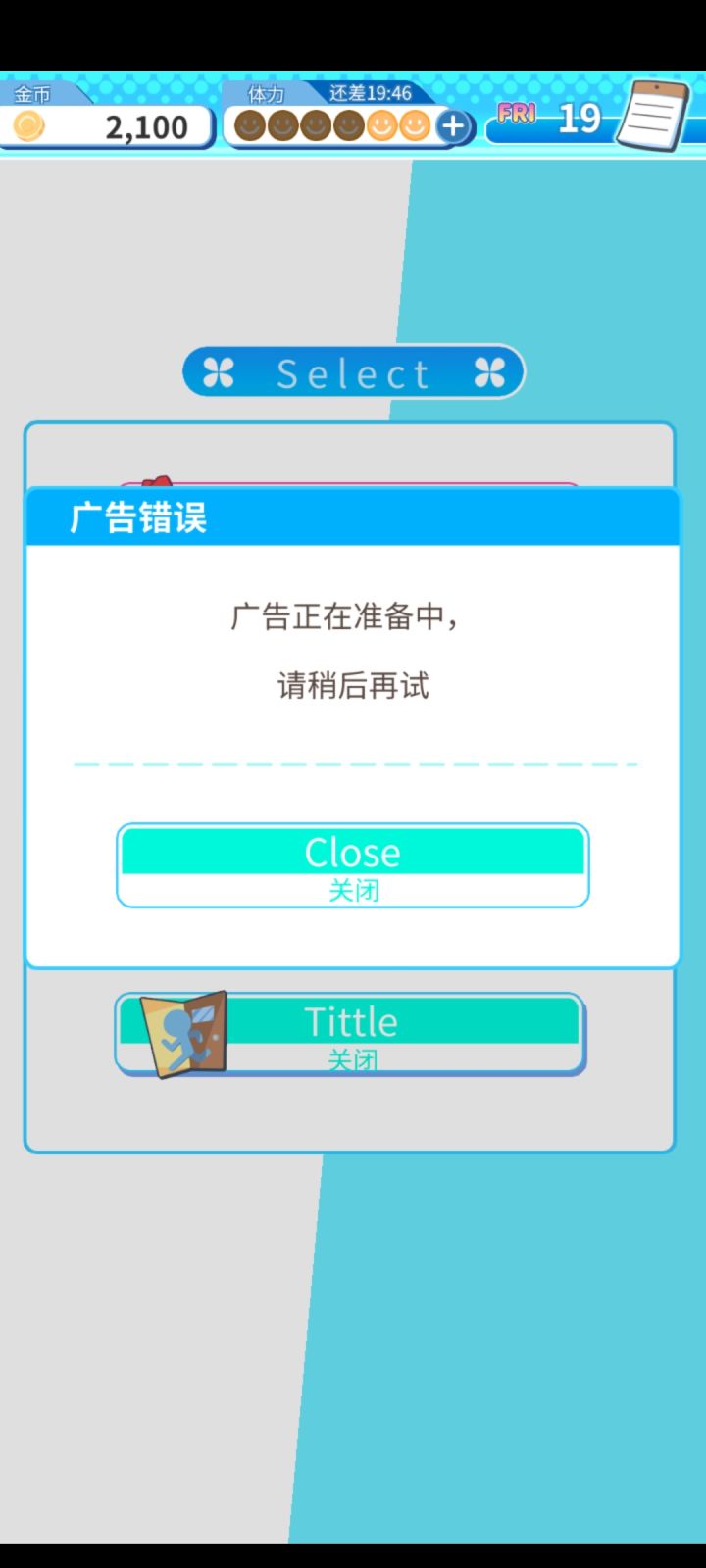我想问一下为什么看不了广告,虽然本来就不想看,但问题是有一些好感度选项要看了广告才能选,这很严重,好感度可是很重要的