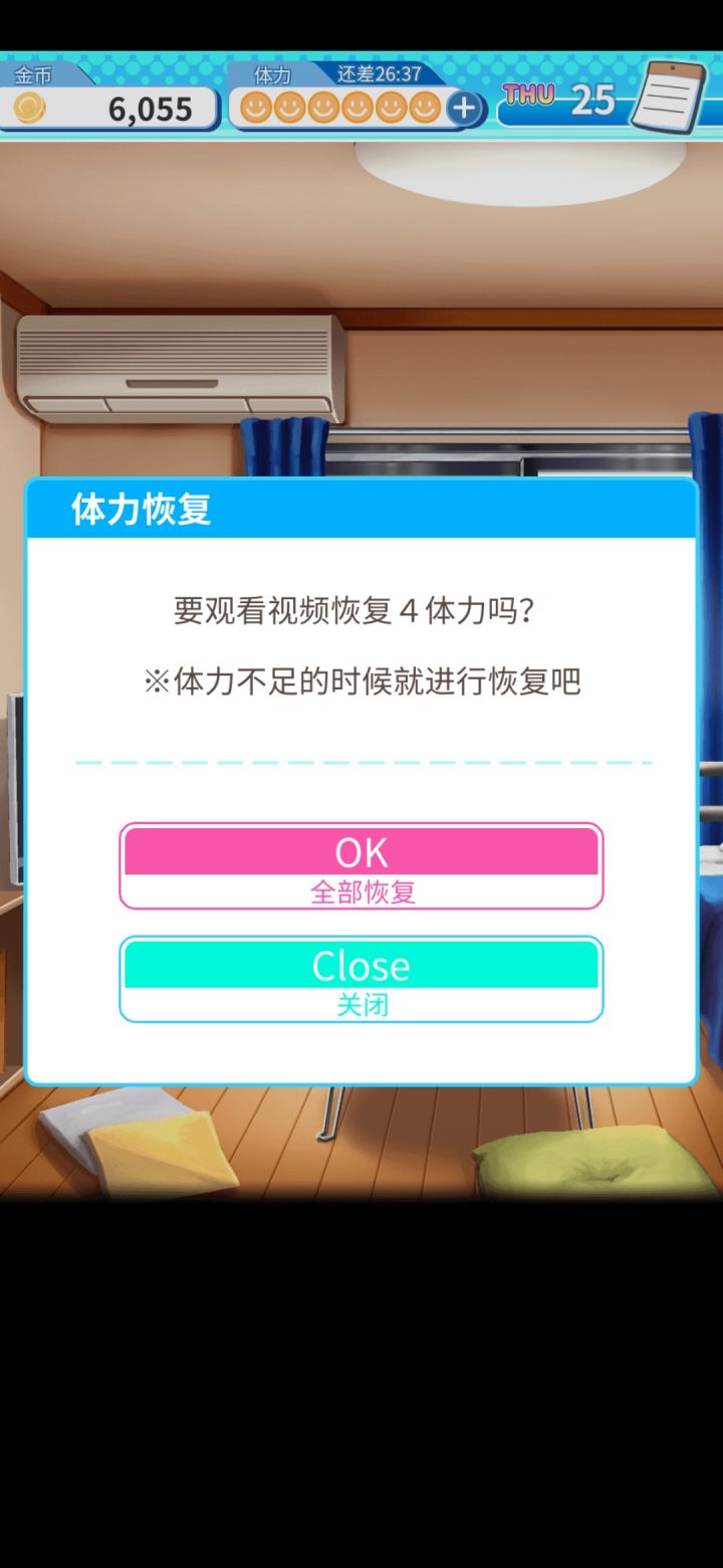 这游戏怎么样我并不知道,因为我根本无法继续。首先是广告问题,既然有广告这个设定,那为什么广告看不了?行,广告我就不看了,那这个兼职设定咋回事?兼职最少的一个需要两点体力,半个小时恢复一点,问题是为什么不做兼职就不能继续?就不能把兼职跳过吗?我一不能看广告二没有体力做兼职三不能跳过。我说我玩个gal被卡关一个小时传出去不笑掉大牙?现在就一个广告问题,广告看不了,如果官方看到了可不可以修复一下?修复了我会在回来的