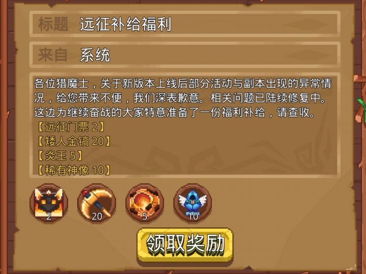 远征补给福利邮件时间持续到2月16日0:00紧急更新补丁邮件时间持续到2月13日08:00