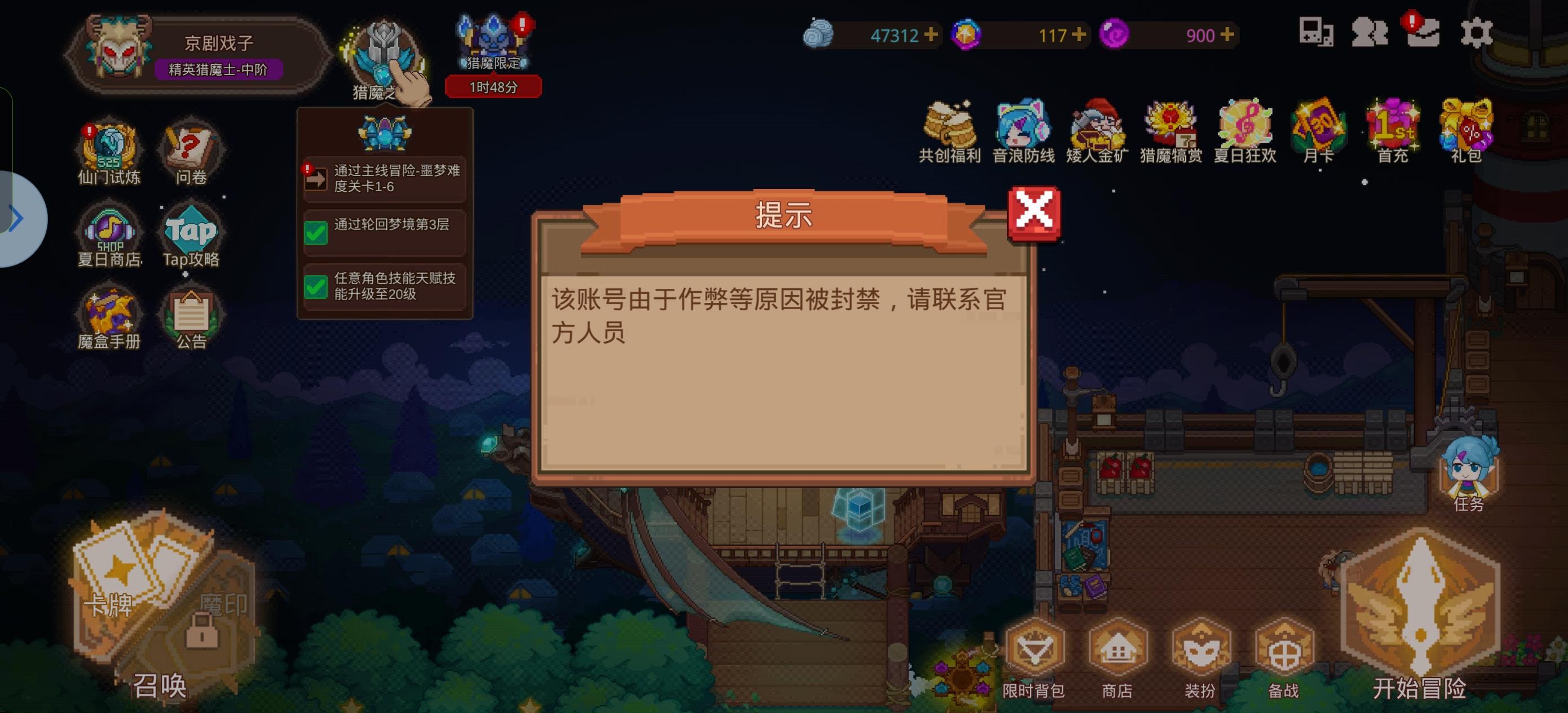 打个夏日活动我好不容易打到三千多打完出来给我号封了,真顶