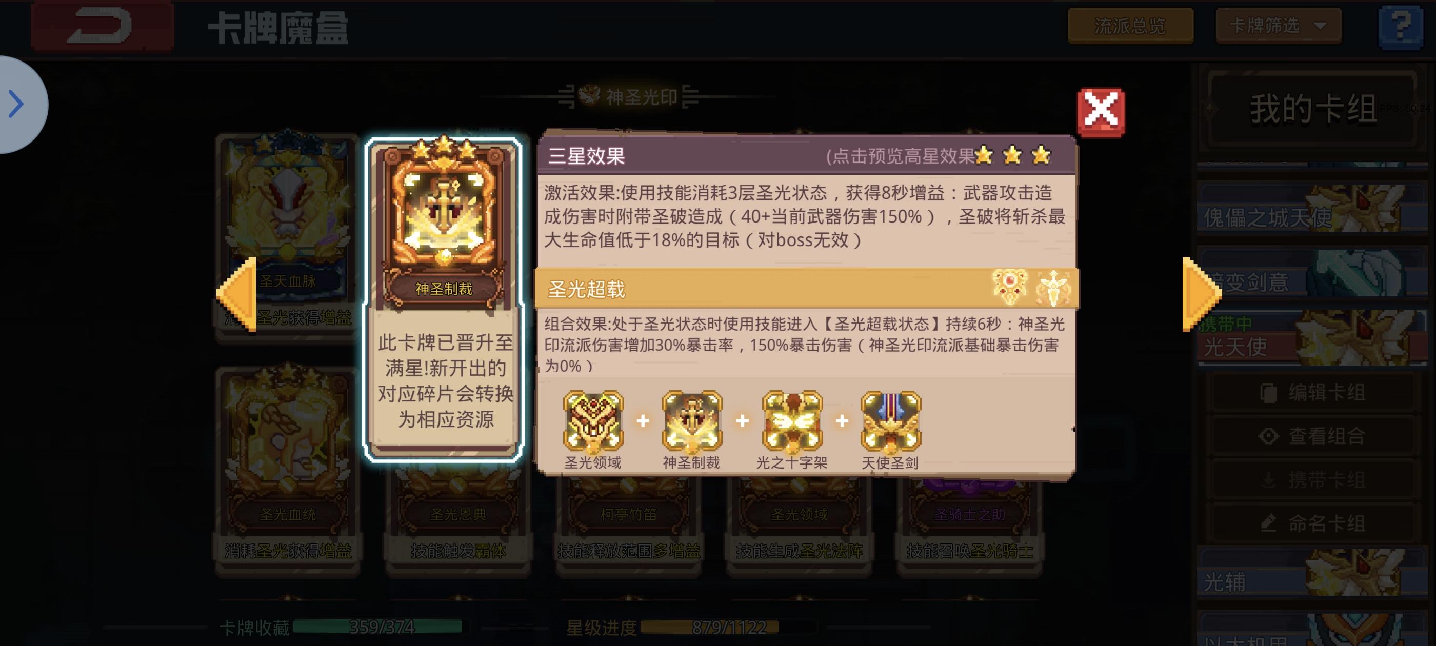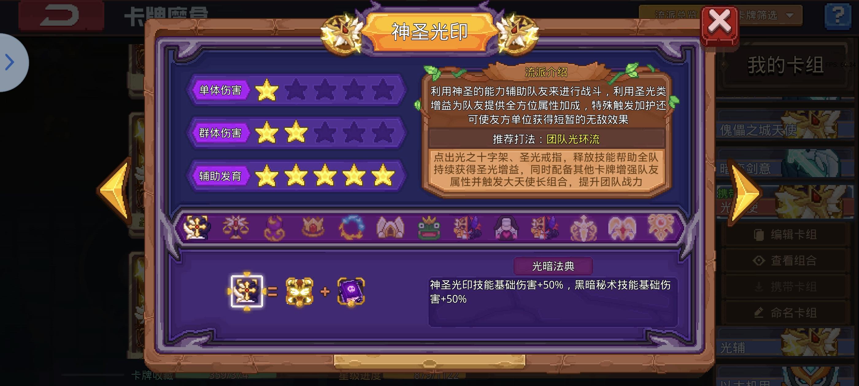 问题:大多数金卡根本提供不了辅助发育的基础,给队友提供的属性太低了,甚至有些东西队友还吃不到效果,光天使不吃太上增伤,也不吃刀锤,好多增伤卡牌都吃不了,光天使武器造成的伤害,难道就不算是武器伤害了吗?还不如把武器改成刀,还能吃到仙门剑意伤害