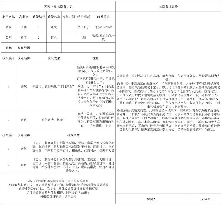 #无悔华夏名臣设计大赛 #高渐离与荆轲高度关联,所以我在设计高渐离同时重做一下荆轲,其中还有我对政策设计体系的一点想法。我还设计了钟馗https://www.taptap.cn/moment/640231633571546234 ,大家有想法欢迎评论交流