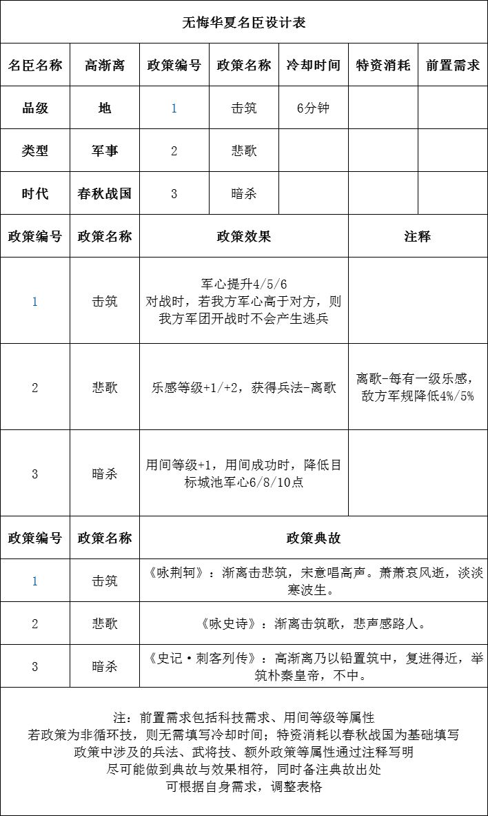 #无悔华夏名臣设计大赛 人阶贤者位名臣,燕国乐师高渐离。太守技给个太史慈同款商贸+军心,步兵家仆。