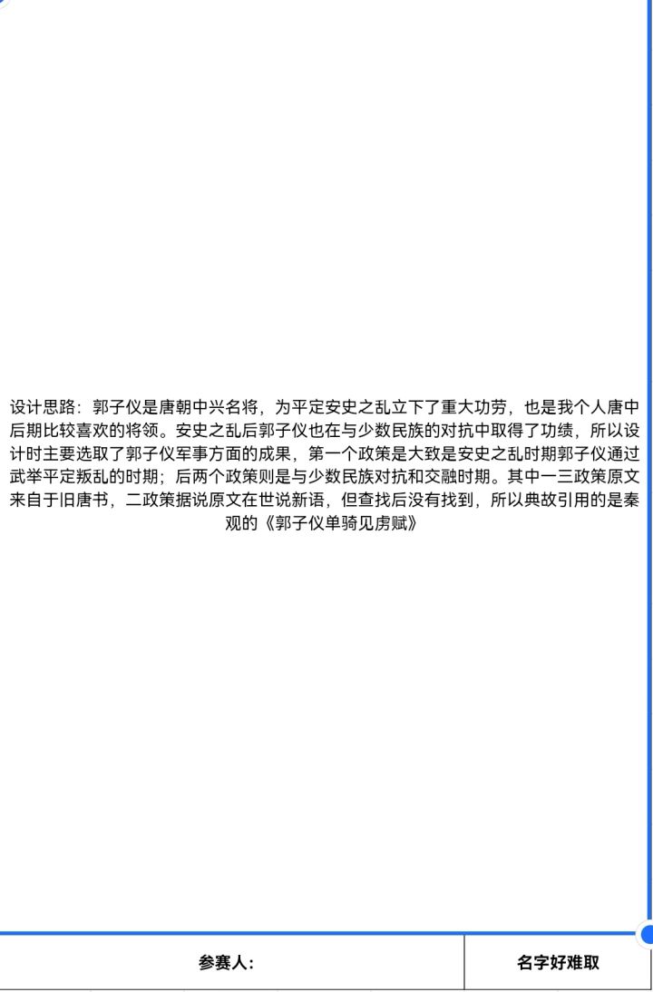 #无悔华夏名臣设计大赛 朴实无华的一坨,负责凑够有效人数
