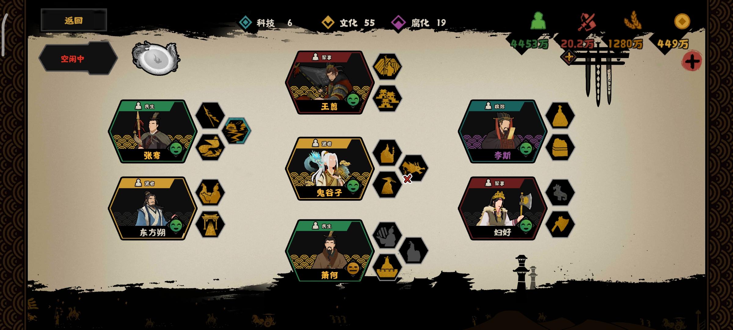 献祭:吕雉(政)+萧何(学)萧何招人,吕雉杀人留技能