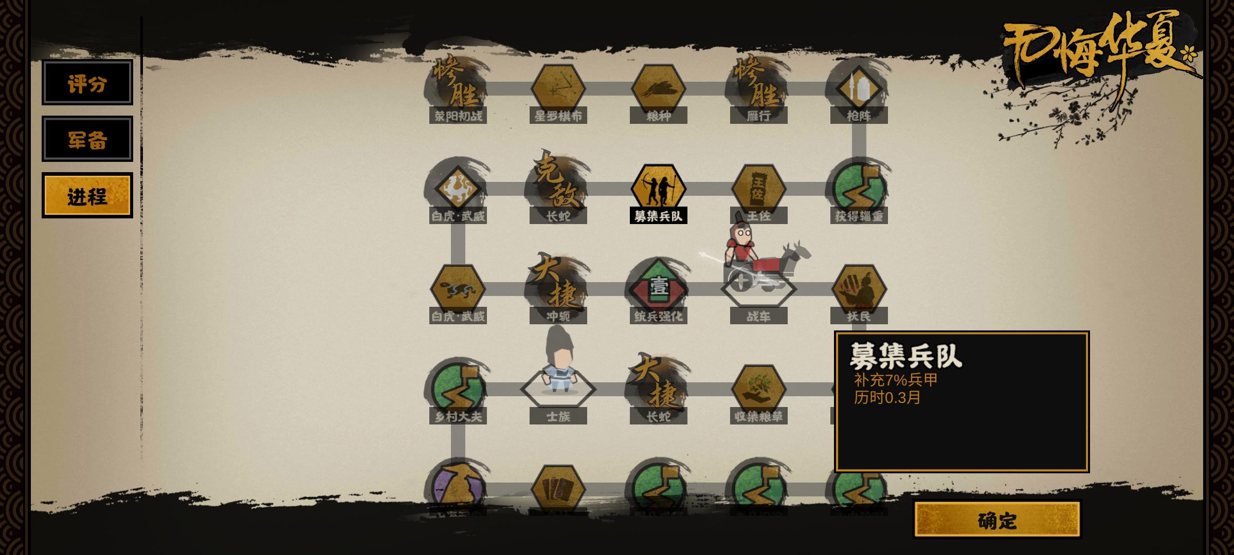 主骑兵,开局升军团人数,基本没怎么读档取档几次,就过了,虽然没有三星,唯一的遗憾就是这个流程有点长,打太久了。