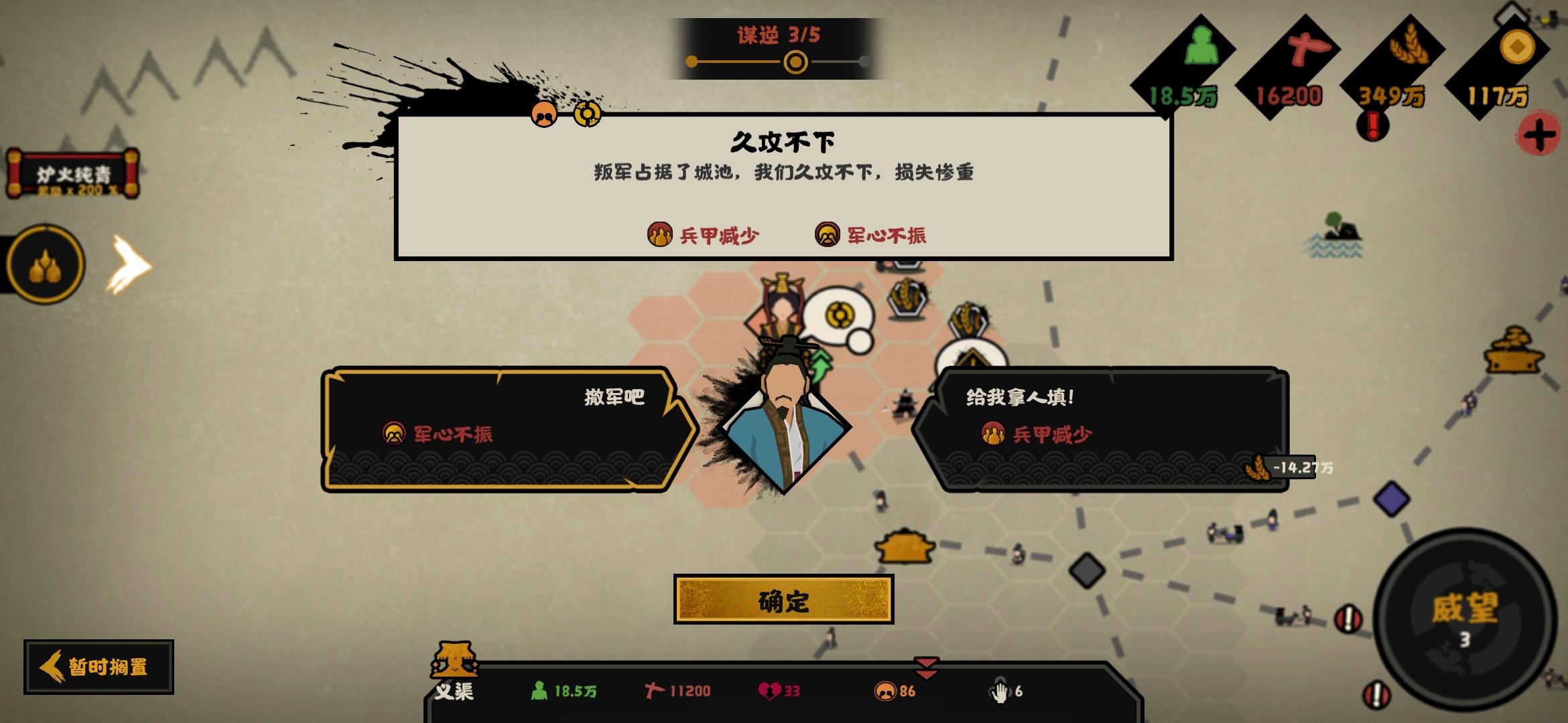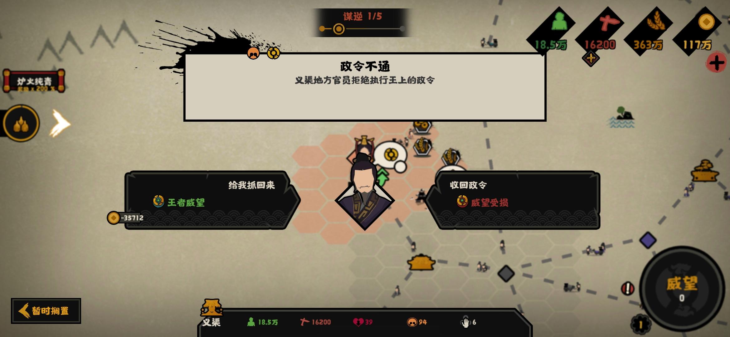 幽禁大砍建议高威望低民心触发民变目前才刷两把不排除双马策划设定每日纹石上限的可能