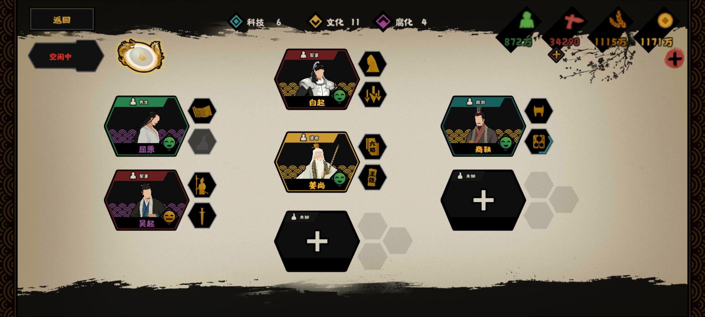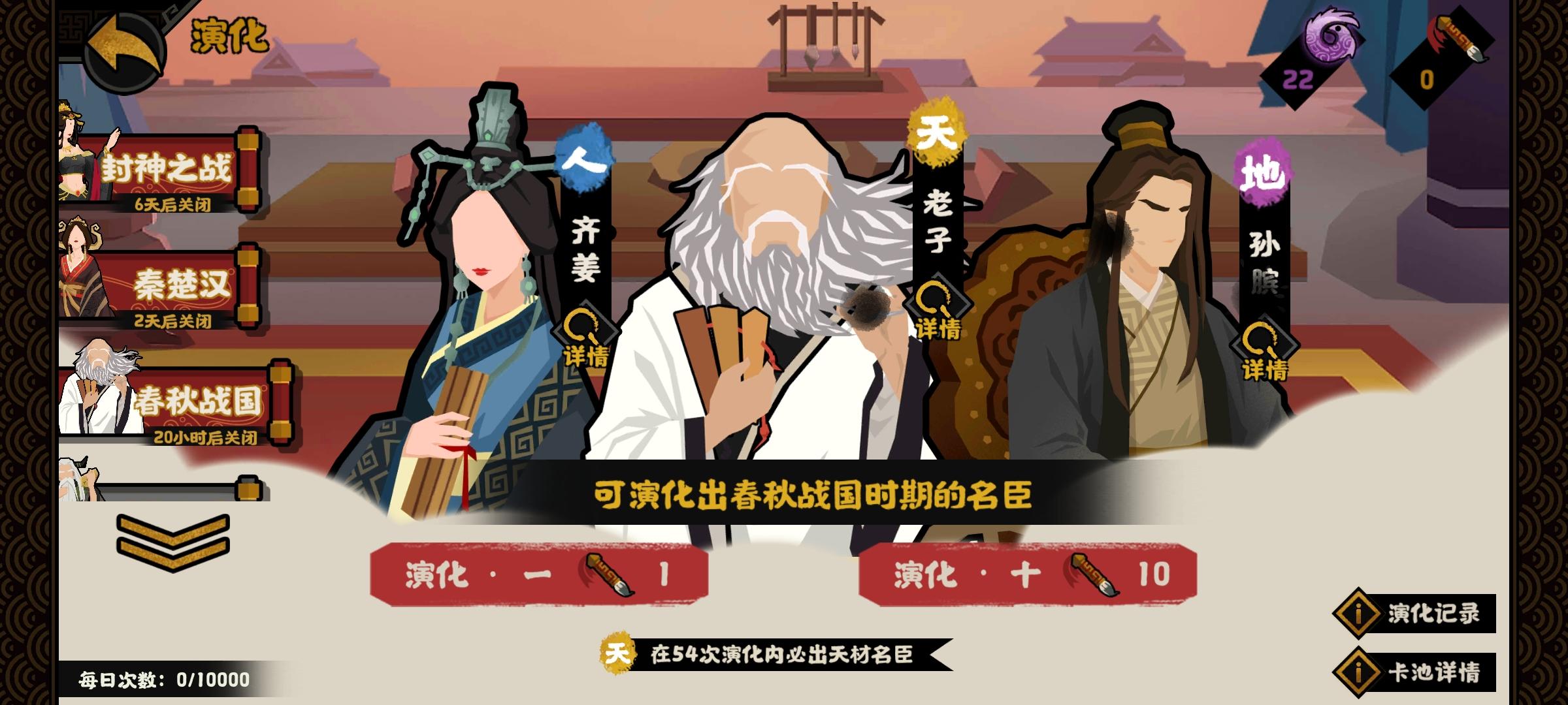 春秋战国,个人通关方法,一般3到4个资源包就可以在2小时左右通关。