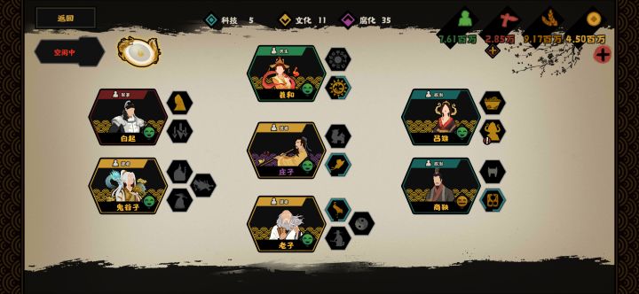 开局先灭魏韩楚,羲和大家都懂,卡好时间,直接连战,灭了选俘虏,这样有兵,不影响下一波,注意资源,不够就选资源,拿兵一直打不要停,进游第一波点加战力的,打第一个土匪拿到铜片直接解锁1级徒兵,全上徒兵(懒癌晚期)不嫌麻烦可以兵种克制打,中期灭山绒和义渠,记得留兵他们会骚扰你,还有上个兄弟说用军心加速打架的,这里不介意用,因为资源很匮乏,在不用道具的情况下,掉军心12345,越远好像越多还是次数越多越低忘了,兵心低了容易溃败凉凉 这样进本前期完美开局,白起好感嘎嘎90,太后一直用间开局到中后期就100了,想刷鬼的就卡会盟时间和科技,中后期轻松100,没有白起可以孙武,有白起直接灭楚拿孙武,太后政策用完就丢,不影响鬼谷、老子、商鞅,我有商鞅不带是因为游戏可以招募到,太后商鞅一起刷,基本不到90年就可以全满,不满留两个实力刷好感,防止兵变没满提前结局,最后一句 大家不要喷官方了,也别提什么pvp,真出了氪金的能玩死你,白害无利 我就月卡党,现在11个金 氪金的都能刷到很良心了
