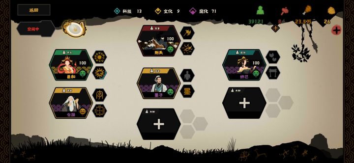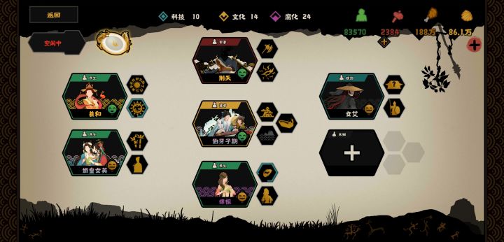 一年平推三皇五帝,二十分钟左右留一个神农(用来刷好感度),接下来等想要的名臣刷新,然后躺平刷好感八碎片过关。核心女艾工具人。前期攻城下来全部拿粮食和钱,民心不需要管,随便打也三星,兵不够用钱粮招聘不掉军心。刷娥皇女英等公元前3489-85,挂机时间过了也不要急,名臣刷新时间也会推迟,慢慢等也有可能会出来。遇到不需要的名臣及时拒绝,地图上最多一次出现四个游荡名臣,不拒绝可能会把需要的名臣挤掉。羲和 桥山 3496螺女(螺祖) 板泉 3495嫦娥 龙山 3491娥皇女英 云梦泽 3489-85羲和 螺女 嫦娥都是民生,用送礼刷好感螺女可以刷娥皇女英嫦娥可以刷羿大概就这样