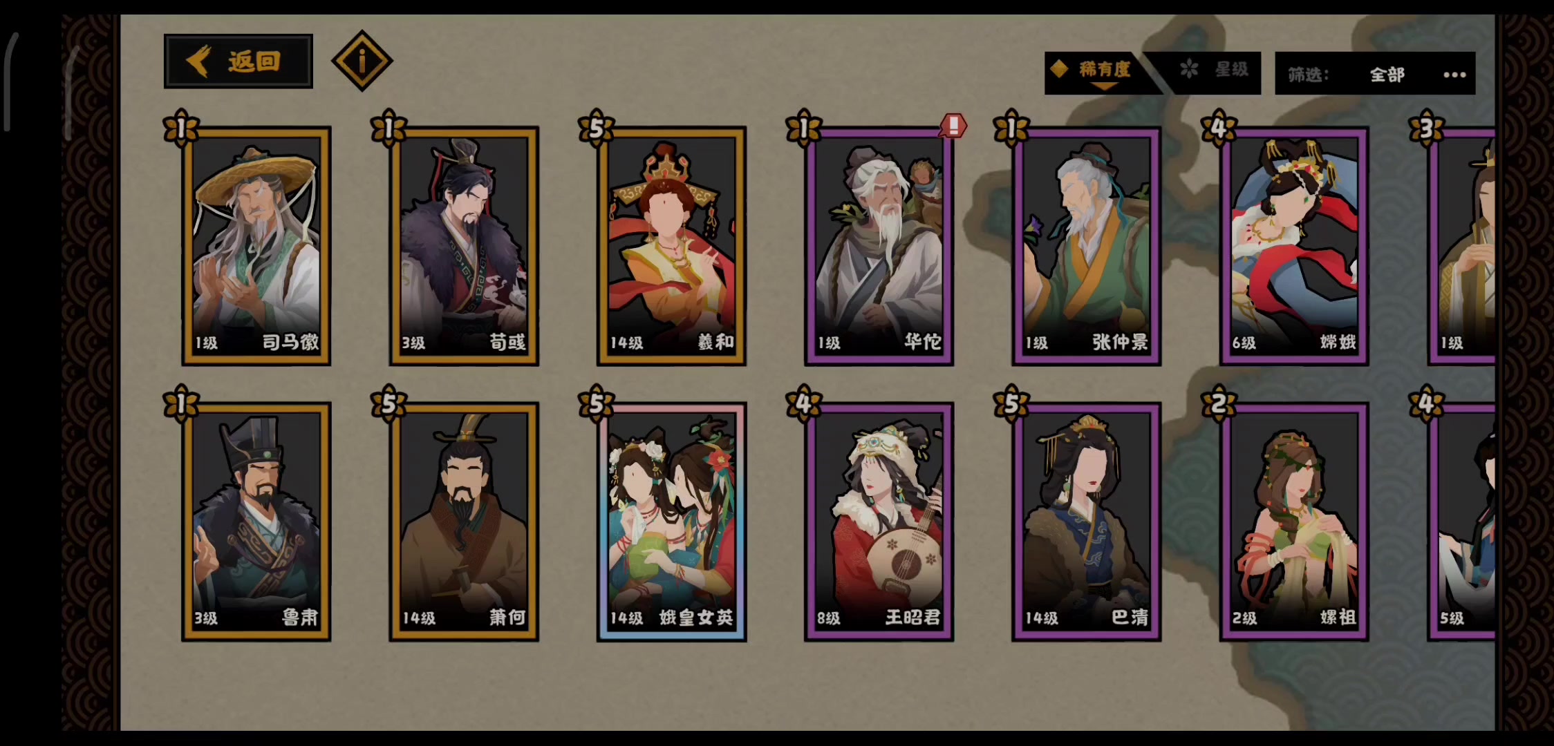 之前就想写,现在想起来了。在介绍速刷文物方法之前,先搞清楚三个问题:1.什么是文物?又叫藏品,是散落在各个时代的文化结晶,可以通过寻访获得。城市369级出寻访,3星名臣太守每次升级寻访,文物的基础知识可以看2.为什么要收集文物?文物越多,文化点越高,结局评分越高,结局评影响名臣经验、纹石。实用角度考虑,建议所有人,把春秋战国文物集50个。因为春秋、三家、吴楚越、横扫六合,这些刷碎片