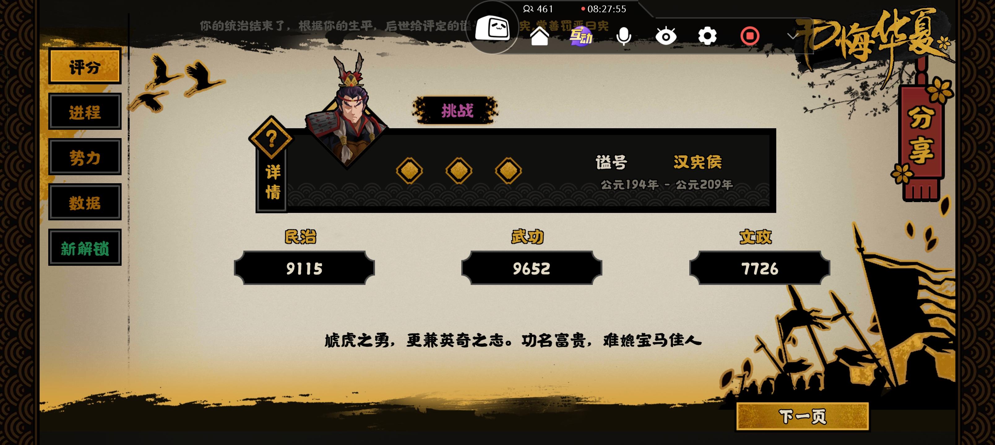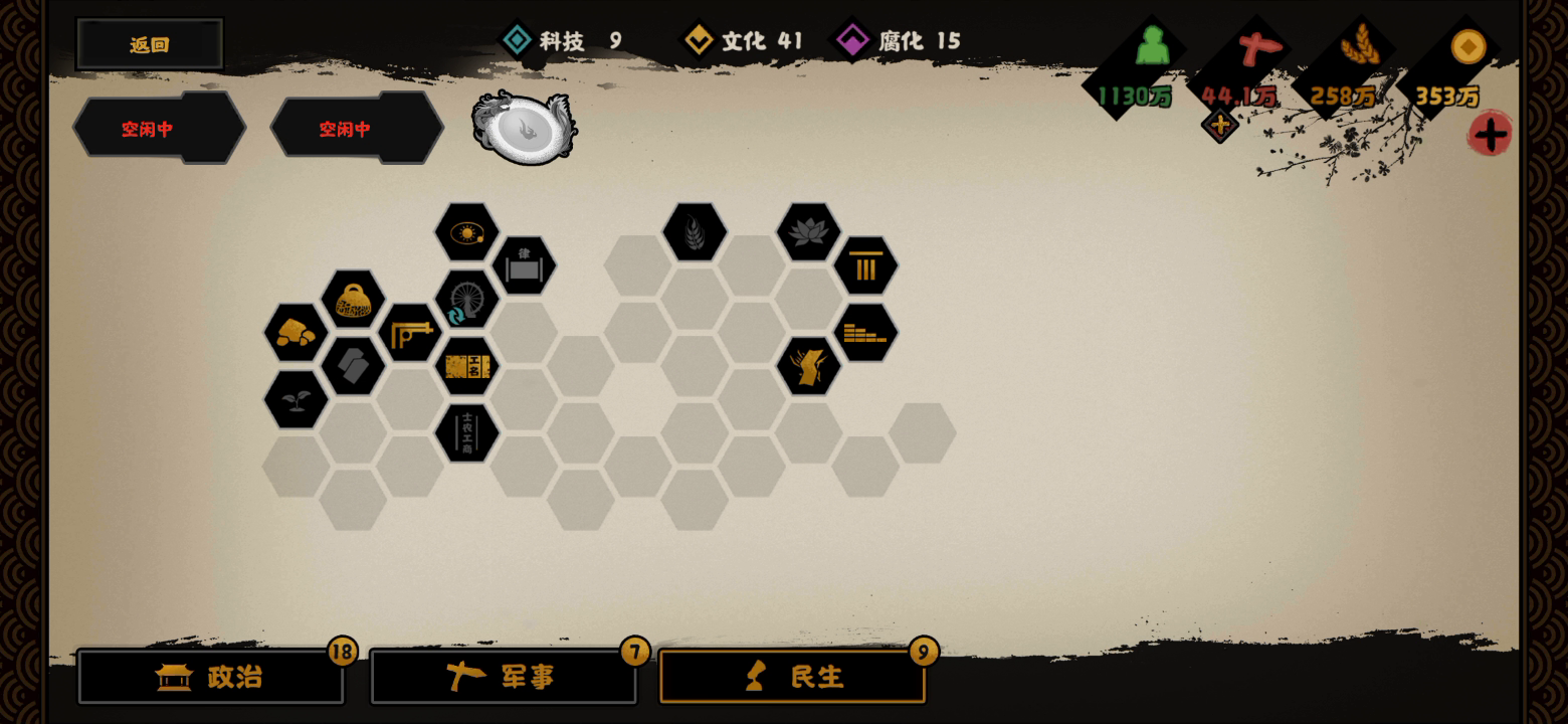 没有一开始就录,将就看一下,名臣带的五级五星巴清,12级五星商鞅,1级1星王翦,9级四星老子,中途有失误没注意钱粮先点了法治结果导致灭韩后没钱粮继续点水利了所以用了第三个,虎符是因为韩要来打我为了方便点先把韩揍了,军事位王翦打横扫六合可以说是顶配名臣,下位替代看三星起步的刑天孙武哪吒四星起步章邯(别的也行),韩信不行因为要马