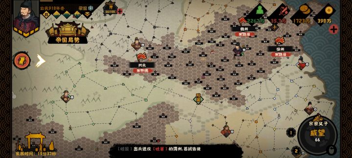 我重开了四五次档了一直没剧情,第一次我等了两三个小时,义子都收了二十多个了一直没剧情,梁晋阵营战根本没法触发,我还以为是前期灭国的原因又重开了几次,到了这次人机自己打灭了两个国都没剧情这叫我咋玩啊我又玩了把梁,还是没剧情,到底是要怎么触发啊真没招了我给地图上所有能灭掉的国家都灭了,还