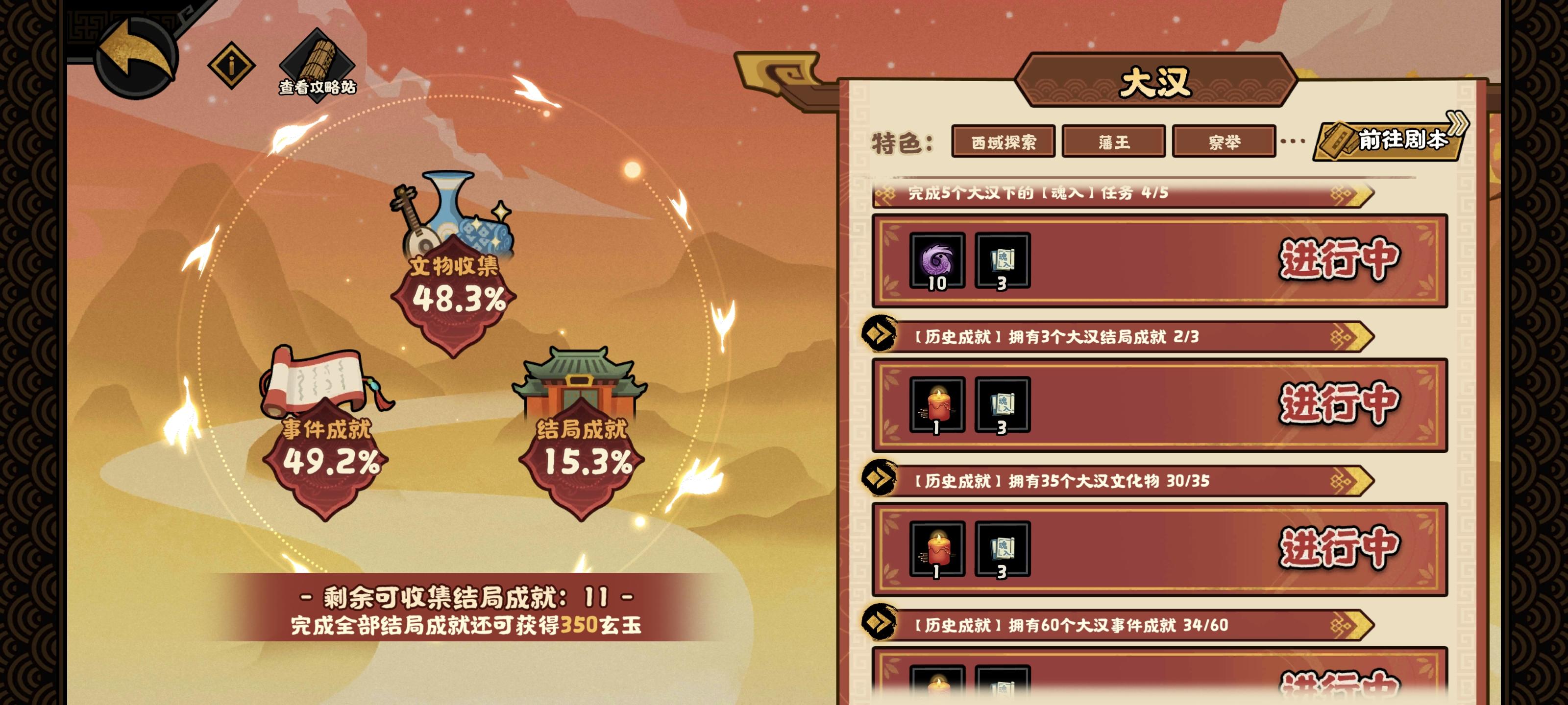 大汉剧本西域寻访bug