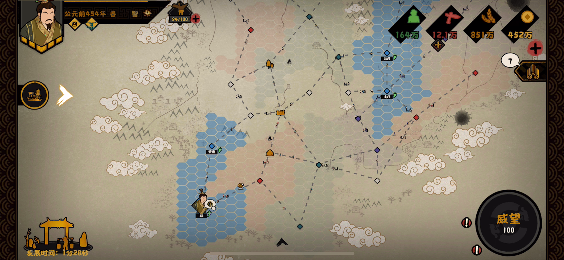这个上郡是我刚打下来的秦国的一个城池,我不明白为啥它的六级城可以有5个资源点,而我的没有那么多(这局我没有6级城忘了有几个了,但是我的5级城才3个资源点,也就是说我的6级城最多也就4个资源点)