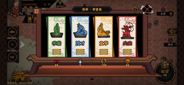 怎么察举啊?控属性吗?快10次了一天也无。想刷班超司马迁