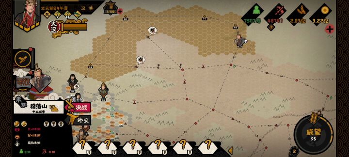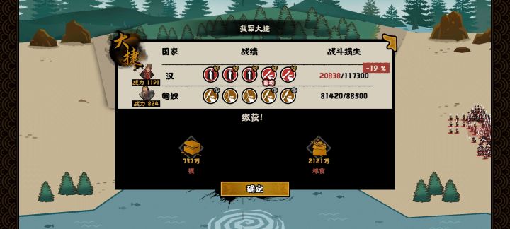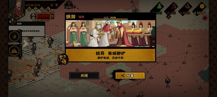 花了我一百多年时间不和亲终于打过了,本来还想留着匈奴不决战,等着把整个西域完全踩干净然后把狼居胥山拿下就匈奴远遁了。没想到系统自动给我算了和西域都护结局。还行,谥号汉孝帝价值100不亏。有一说一零氪打起来没有好名臣还真挺不好打的。没有那个白玉盘我全靠挂机离线刷经济唉!!终于也让我战力碾压匈奴了,就想说你也有今天!!!重骑,重步,弩兵,长戟能开全部开满,再带上我西域雇来的特种部队赢麻了。哈哈哈哈😃😃😃