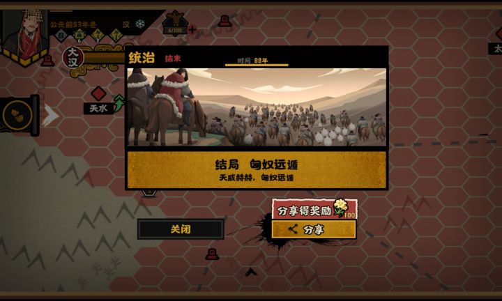 分享一下吧。匈奴远遁就用陆压妺喜。具体流程其他大佬也发过了。大汉永昌和都护西域可以用一套名臣。开局利用赵王开共伐。献城也行。但是献城不稳定。共伐直接夺敦煌开西域。等科技生好以后就可以匈奴未灭何以家为了。最好带班超张骞啥的可以加影响力的。