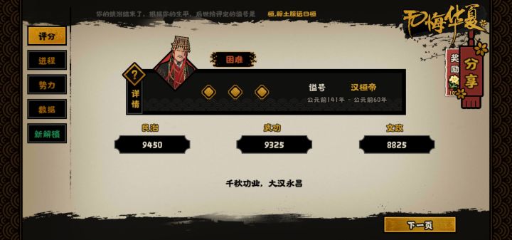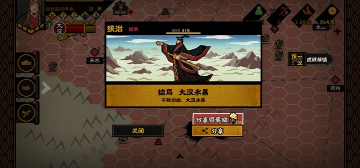 千秋功业 大汉永昌!昨晚打了一个通宵,加今天一下午终于打通关了,我个人感觉不开落玉盘可能会好打一点还有就是和亲?他匈奴也配我大汉女子远嫁?直接打,绝不能低头😆