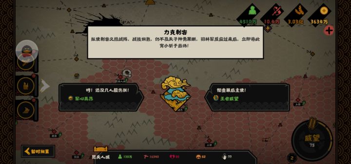 兢兢业业在大汉干了许多年,顶住了前期的压力,治理了藩王的恶业,励精图治,爱民如子,军心民心即将达到巅峰,正当此蒸蒸日上之际,在慎之又慎的选择下还是毫无抵挡之力地遇刺身亡了。六个小时的努力就这样付之东流了,可见在这个游戏里玩家的时间一文不值。卸载了,无悔,再也不见。
