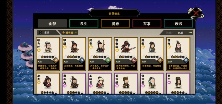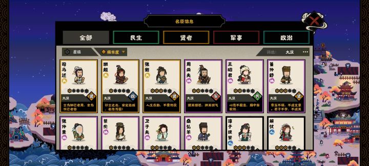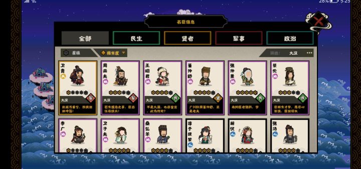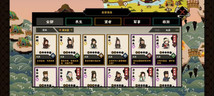 三家分晋挂习惯了。进大汉一下子感觉人麻了,很多都玩不懂。还是得等大佬出攻略后再肝一肝😓😓还有就是115个笔出三个金也是没谁了
