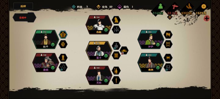 4.好感度:白起与墨子、廉颇好感度冲突,需要平衡,不过还好军事名臣好感度可以靠战胜来获取(奇袭一般是拿来当救命稻草用的)