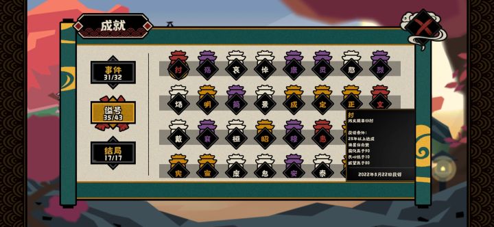 结局数值:民心97,军心100,威望100,腐化0