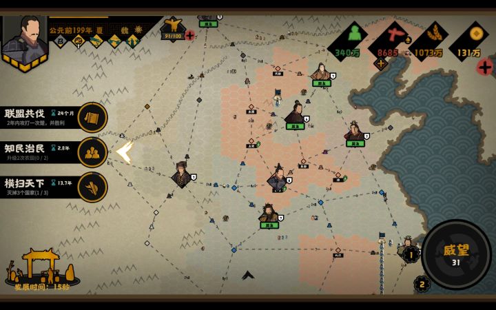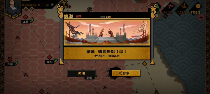 大无语事件(ノ=Д=)ノ┻━┻玩吧挑战秦楚汉的魏,开局野心国家汉,因为有骑兵,容易打过,就想快速把他灭了,结果就差一击,夜郎一个会盟停战了(ノ=Д=)ノ┻━┻。之后我就去玩其他档了,回来时秦战力已经400多了,之前还是300多。打不过,幸好我带的张良,通过抢最后一击得了一些城。刚才抢城时,我284,秦400多,相同规模,硬是我用子弟兵,双投掷费了一半兵打完了,结果秦刑天一把斧子砍了我剩下一半,心态直接爆了,幸好是孤城,用强行军再发一次兵抢下了。(话说挑战刑天怎么经常几乎是把把都有)(ノ=Д=)ノ┻━┻
