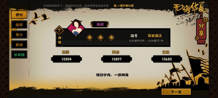 2.进入中期需要叠民心,庄子成为核心名臣,周公旦可以制礼加威望,代价是腐化暴涨