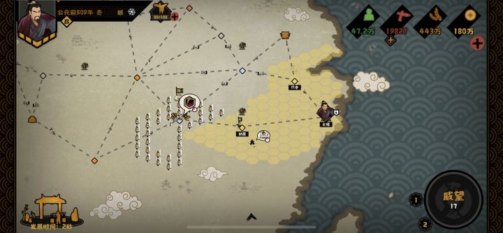 1年足矣,先臣服于楚,拿下九江便可决战。不过有个小疑问,威望低于20不是会触发幽禁或篡权吗?为什么我没触发?