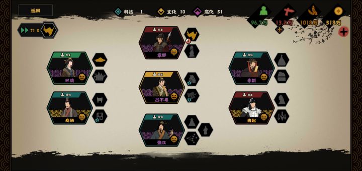 他还是被我惊住了,大势所趋,商朝前期比较腐败,虽然地盘很大,但且恶,军心比较低,民心更低,但是可以产很多的酒(那个字念什么,我竟然不知道,求大佬)。直接占卜吉运,天命上去战斗力就好了,后期特别轻松