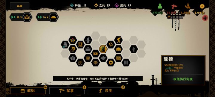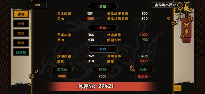 谥号“文”数据。我民生和政治的政策都是点满的,就差两个2小时的政策豪民和富贾还在研发中。给大家参考下。