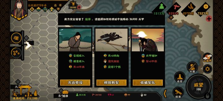 本来齐国来打我被我打回去,打着打着对面没兵了,然后打琅琊。戏剧性的一幕来了,琅琊直接哗变,齐国灭亡,然后继续打琅琊,打着打着对面又没兵了(不得不说继承了前代齐国的优良传统)直接轻松拿下呀我滴妈